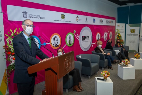 Acompañado de la secretaria de Cultura y Turismo del Gobierno del Estado de México, Marcela González Salas, el rector de la UAEM, Carlos Eduardo Barrera Díaz, destacó que la FILEM es una oportunidad de generar fuertes vínculos con la lectura, escritores, así como con las editoriales más importantes del país, investigadores, docentes y artistas.