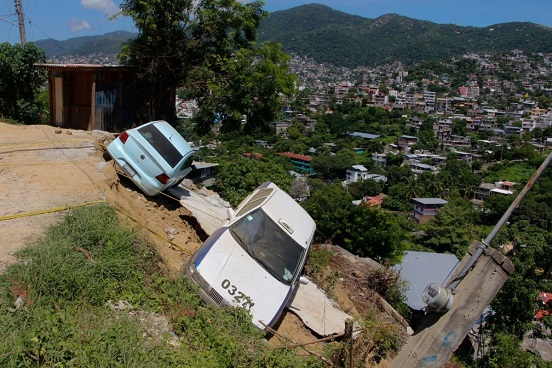 Detalla que son 40 los derrumbes cuantificados en Acapulco, dos en Chilpancingo, uno en Atoyac, uno en Benito Juárez (San Jerónimo) y otro en Petatlán. En la evaluación de derrumbes por municipio de carreteras y vías están Juan R. Escudero, Eduardo Neri (Zumpango), Mártir de Cuilapan y Chilapa.