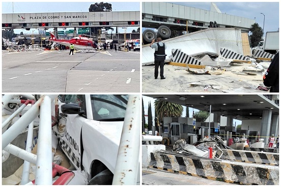 Un tráiler se habría quedado sin frenos por lo que impactó la caseta de cobro de San Marcos, en la carretera México-Puebla.