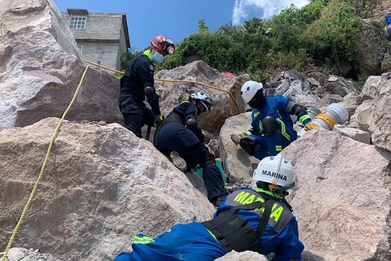 En un comunicado la dependencia señaló que una célula combinada con personal naval y elementos de otras dependencias en apoyo a un geólogo de Protección Civil efectuaron un dictamen técnico sobre la fisura en la pared rocosa.