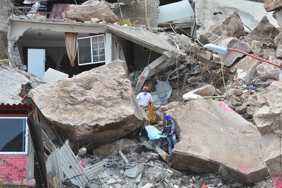 “Hemos puesto ya 60 toneladas de material para poder contener y estabilizar la ladera y que los trabajos de búsqueda y rescate puedan continuar. Eso es lo más importante, tener la seguridad para los cuerpos de rescate, que seguimos haciendo búsqueda y rescate dentro de la zona cero.