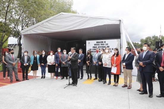El presidente de la Mesa Directiva de la Cámara de Diputados, Sergio Carlos Gutiérrez Luna, participó en el acto de Donación de víveres para las zonas afectadas por las lluvias en los estados de Hidalgo, Puebla y Veracruz, realizado en el Palacio Legislativo de San Lázaro.