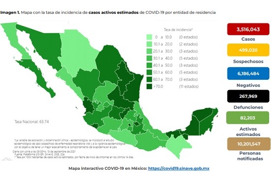 La Secretaría de Salud (SSa) informó que en las pasadas 24 horas se confirmaron 4 mil 161 casos de Covid-19 y 221 fallecimientos. Así, desde el inicio de la pandemia en México, 3 millones 516 mil 43 personas han tenido la infección causada por el coronavirus y 267 mil 969 han perdido la vida por las complicaciones graves del padecimiento.