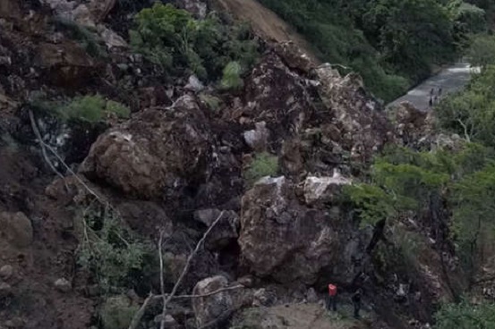 Se tiene estimado que el colapso de talud carretero en el kilómetro 34 de la carretera Villa de Álvarez-Minatitlán, habría removido 50 mil metros cúbicos de material pétreo, dejando como saldo dos personas fallecidas y una lesionada.