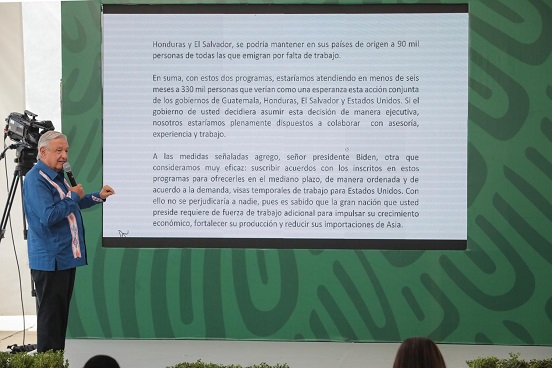 También dijo al presidente Joseph Biden que las personas inscritas en los programas podrían obtener, en el mediano plazo, visas de trabajo temporales para ir a laborar a Estados Unidos. Esta fuerza de trabajo ordenada impulsaría el crecimiento económico de esa nación y fortalecería su producción, lo que reduciría las importaciones de Asia.