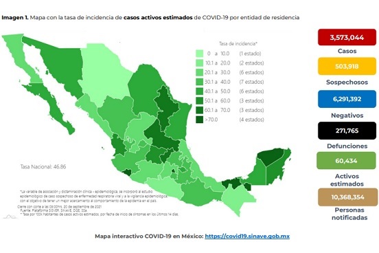 También los casos activos -personas que iniciaron con síntomas en los pasados 14 días, continúan disminuyendo. Hoy se estima que son 60 mil 434.
