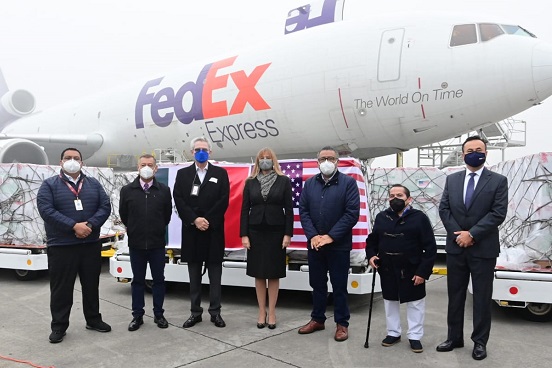 A las 8:16 h arribó al aeropuerto internacional de Toluca, Estado de México, el embarque con vacunas de Moderna en el vuelo FX53 de FedEx, proveniente de Memphis, Tennessee, las cuales fueron donadas por el gobierno de los Estados Unidos a nuestro país.