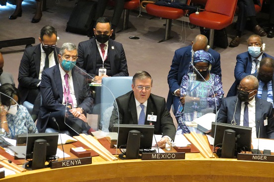 En el marco del 76° periodo ordinario de sesiones de la Asamblea General de la Organización de las Naciones Unidas (ONU), que actualmente se desarrolla en Nueva York, el secretario de Relaciones Exteriores, Marcelo Ebrard Casaubon, participó en el debate abierto del Consejo de Seguridad sobre Clima y Seguridad.