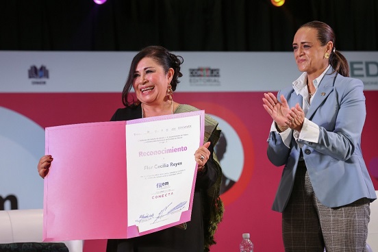 La poeta, escritora y periodista, Flor Cecilia Reyes, fue nombrada egresada pródiga de la Universidad Autónoma del Estado de México (UAEM), durante el homenaje que le rindió la máxima casa de estudios mexiquense, a la también promotora de la cultura y la literatura, como parte de las actividades de la Feria Internacional del Libro Estado de México (FILEM).