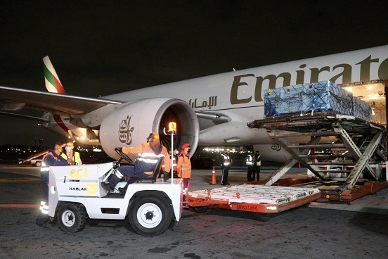 A las 3:04 h llegó a la terminal 1 del Aeropuerto Internacional de la Ciudad de México (AICM) “Benito Juárez”, el décimo sexto embarque de esta farmacéutica en el vuelo EK9915, procedente de Moscú, Rusia, con escala en Zaragoza, España.