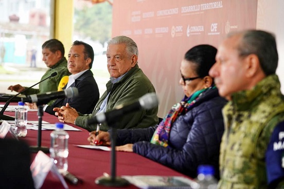 El jefe del Ejecutivo destacó la labor de las Fuerzas Armadas y de las autoridades de la Comisión Federal de Electricidad (CFE), la Comisión Nacional del Agua (Conagua), la Coordinación Nacional de Protección Civil y del gobierno estatal de Veracruz ante la emergencia.