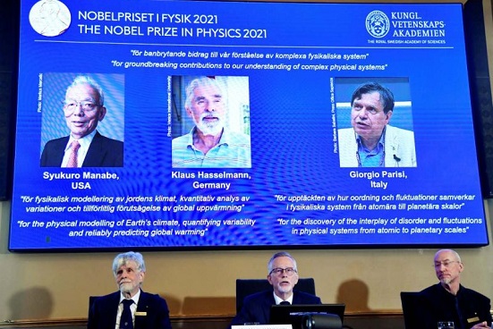 El Nobel de Física 2021 fue concedido este martes a dos expertos en la modelización física del cambio climático, el nipo-estadunidense Syukuro Manabe y el alemán Klaus Hasselmann, así como al teórico italiano Giorgio Parisi, experto en el desorden en los sistemas complejos.