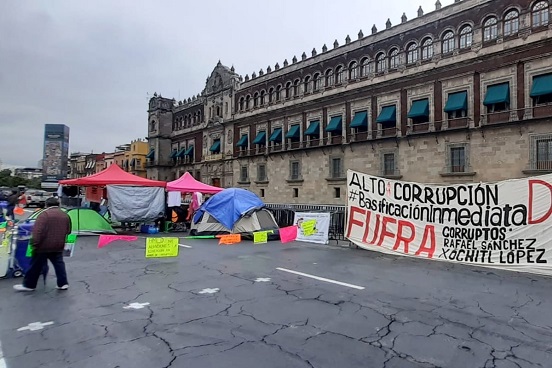 Instalaron su plantón en el circuito de la Plaza de la Constitución con mantas, pancartas y casas de campaña en donde han permanecido por al menos dos días.