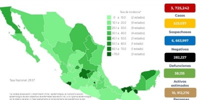 Ssa reporta 2 mil 7 nuevos casos Covid-19 y llegan a 282,227 las defunciones