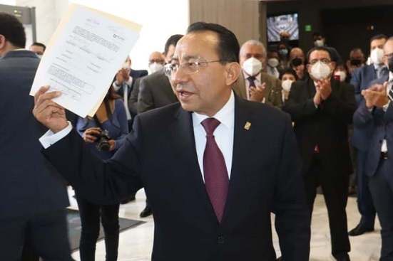 El presidente en funciones avanzó hacia la oficina registral, entregó la documentación correspondiente, la cual le fue sellada, y en esa calidad la mostró a los presentes, con la convicción de haber cumplido con el primer requisito de esta carrera por la presidencia del Poder Judicial, que se decide el próximo miércoles 27 con los votos que habrán de emitir 79 magistrados, incluido él, en sesión pública.