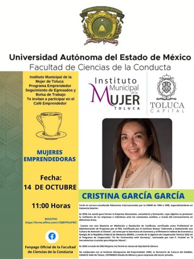 El gobierno municipal de Toluca, que preside Juan Rodolfo Sánchez Gómez, y la Facultad de Ciencias de la Conducta de la Universidad Autónoma del Estado de México unen esfuerzos para impulsar la conferencia gratuita virtual denominada Mujeres Emprendedoras.
