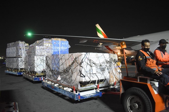 A las 2:29 h llegó a la terminal 1 del Aeropuerto Internacional de la Ciudad de México (AICM) “Benito Juárez”, el décimo noveno embarque de esta farmacéutica en el vuelo EK9935, procedente de Moscú, Rusia, con escala en Frankfurt, Alemania.