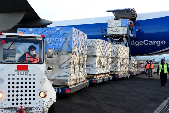 A las 7:23 h llegó a la terminal 1 del Aeropuerto Internacional de la Ciudad de México (AICM) “Benito Juárez”, el vigésimo embarque de esta farmacéutica en el vuelo 9601, procedente de Moscú, Rusia, con escala en Ámsterdam, Holanda.
