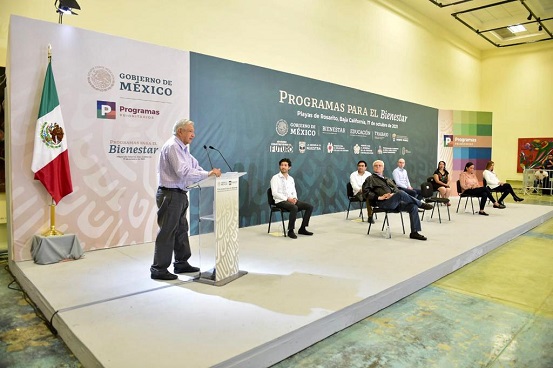 El presidente estuvo acompañado por el gobernador de Baja California, Jaime Bonilla Valdez; la gobernadora electa, Marina del Pilar Ávila Olmeda; la subsecretaria de Bienestar, Ariadna Montiel Reyes; y el subsecretario de Empleo y Productividad Laboral de la Secretaría del Trabajo y Previsión Social (STPS), Marath Bolaños López.