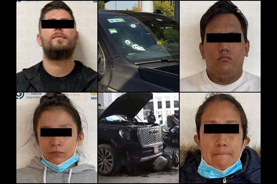 Precisó que de las cuatro personas detenidas son los dos hombres, Geovanny o Yannick ’N’, El Alemán, y Rogelio ’N’, El Memín, los que participaron directamente en el ataque contra el sonido de la cadena de restaurantes Rosa Negra.