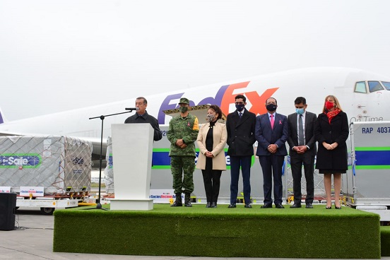El titular de la Secretaría de Relaciones Exteriores (SRE), Marcelo Ebrard Casaubón detalló que las vacunas que llegaron son provenientes de Estados Unidos, conforme a lo ofrecido por el presidente Joe Biden y la vicepresidenta Kamala Harris.