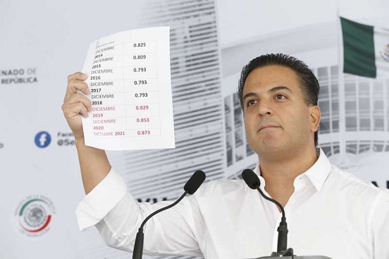 Con información oficial, el senador mostró cómo la tarifa doméstica a finales de 2014 era de 0.825 por Kilowatt, disminuyendo a 0.809 en 2015, bajando de nuevo en 2016 y manteniéndose constante hasta 2018 en 0.793; pero a partir de 2019 y durante los últimos 3 años de la actual administración, ha aumentado cada año hasta llegar a 0.877 en 2021 (0.829 en 2019, 0.853 en 2020).