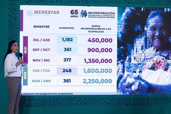 La funcionaria aseguró que las personas adultas mayores ahora reciben dos mil 700 millones de pesos al mes, y al inicio del próximo año recibirán 3 mil 100 pesos.