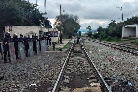 Elementos de la Policía Michoacán, Guardia Nacional y de la Fiscalía General del Estado (FGE), desalojaron este domingo a los maestros que obstruían las vías del tren en los municipios de Pátzcuaro y Uruapan, Michoacán.