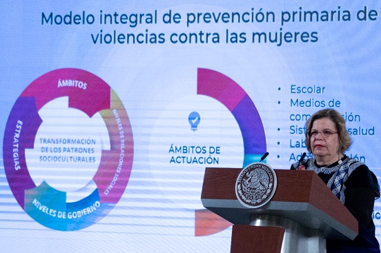 “Es muy importante entender que la violencia de las mujeres no es problema exclusivo de las mujeres, que no solo limita la potencial de la mitad de la población, sino que afecta el desarrollo del país en su conjunto, por eso es tan importante que todos y todas nos involucremos en prevenirla, cambiando los patrones socioculturales“, resaltó la presidenta de Inmujeres.