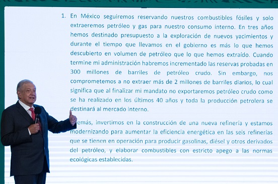 1. “En México seguiremos reservando nuestros combustibles y solo extraeremos petróleo y gas para nuestro consumo interno”.