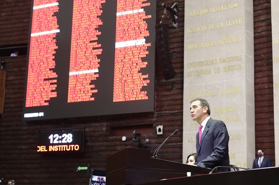 En su comparecencia ante el Pleno de la Cámara de Diputados, el funcionario electoral contestó un cuestionamiento del líder del grupo parlamentario de Movimiento Ciudadano (MC), Jorge Álvarez Máynez, sobre cuánto habían devuelto Morena de su financiamiento como lo había ofrecido durante las pasadas campañas electorales.