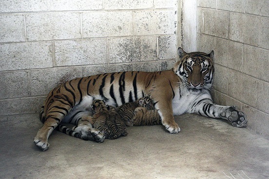 Cuatro cachorros de tigre de bengala, también conocidos como indio, nacieron en el zoológico de San Jorge, en Ciudad Juárez, Chihuahua, los cuales se espera que sean un espectáculo para los visitantes, al igual que su madre, de nombre Thalía, que los protege en todo momento y juega con ellos.