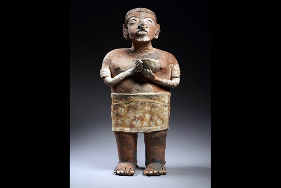 Esa obra, según el catálogo, proviene de la colección de la arqueóloga belga Germaine Wenziner (1893-1948), quien fuera prima del director de arqueología del Museo de Bruselas y gran amiga del pintor Diego Rivera (1886-1957), cuyos conocidos le vendían piezas con las que conformó un nutrido y valioso acervo de objetos precolombinos en los años 30.