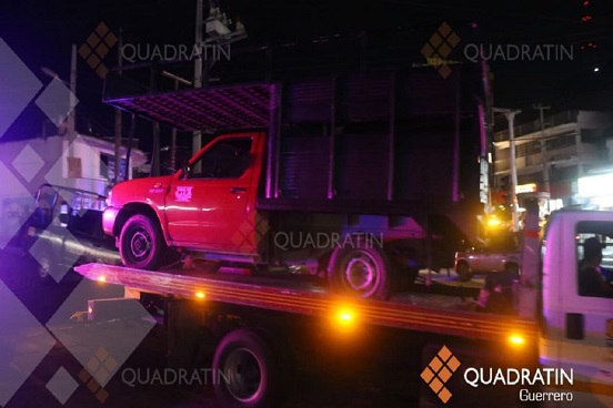 Peritos de la Fiscalía realizaron las diligencias. La camioneta de redilas fue trasladada con los cuerpos desmembrados dentro arriba de una grúa hasta la Fiscalía General del Estado.