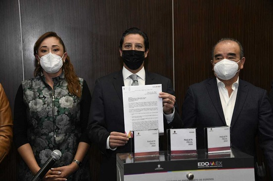 El Secretario de Finanzas, Rodrigo Jarque, a nombre del Gobernador del Estado de México, Alfredo Del Mazo Maza, entregó a la LXI Legislatura local el Paquete Fiscal 2022, integrado por los proyectos de iniciativa de la Ley de Ingresos de los Municipios, Ley de Ingresos y Presupuesto de Egresos del Gobierno estatal, así como de las propuestas de reforma al Código Financiero del Estado de México y Municipios.