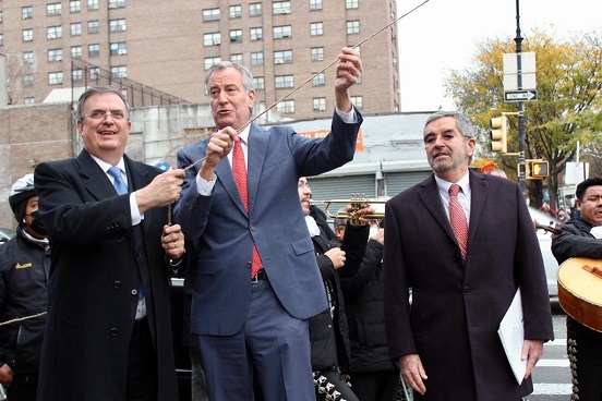 El día de hoy, el canciller de México, Marcelo Ebrard Casaubon, y el cónsul general, Jorge Islas, en compañía del alcalde de la ciudad de Nueva York, Bill de Blasio, y el representante permanente de México ante Naciones Unidas, el embajador Juan Ramón de la Fuente, develaron la placa “México-Tenochtitlan Avenue”, en la intersección de la calle 116 y la segunda avenida de East Harlem, en el condado de Manhattan.