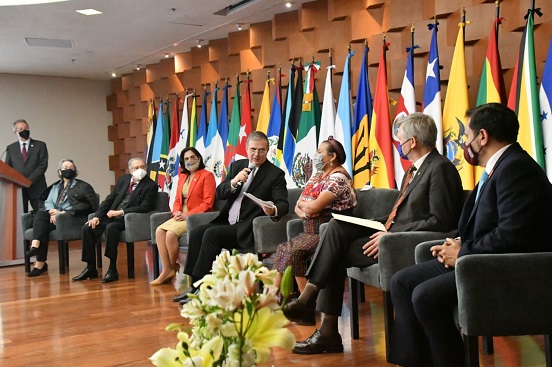 El canciller Ebrard recordó que, a lo largo de su historia, México y su diplomacia han sido promotores permanentes de la paz, con iniciativas como la proscripción de armas nucleares en América Latina, cristalizada en el Tratado de Tlatelolco, o el reciente litigio contra fabricantes de armas estadounidenses.