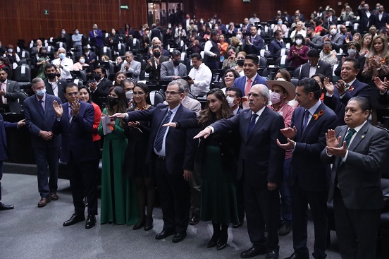 El presidente de la Mesa Directiva, diputado Sergio Gutiérrez Luna fue el encargado de tomarles protesta y dijo: “Ciudadanos Pablo Gómez Álvarez, María del Carmen Bonilla Rodríguez y Fernando Renoir Baca Rivera, protestan guardar y hacer guardar la Constitución Política de los Estados Unidos Mexicanos y las leyes que de ella emanen, desempeñar leal y patrióticamente el cargo que se les ha conferido, mirando en todo por el bien y prosperidad de la Unión. Si así no lo hicieran que la nación se los demande. Enhorabuena y felicidades”.