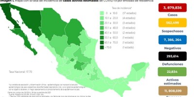 Ssa reporta 3 mil 445 nuevos casos Covid-19 y llegan a 293,614 las defunciones