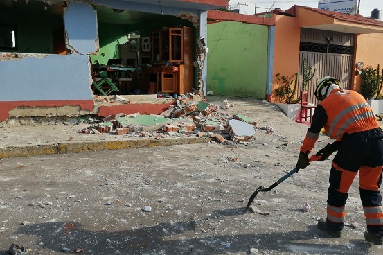 Protección Civil de Puebla informó que hay afectaciones en distintos grados a inmuebles circundantes y a varios automóviles resultaron dañados por proyección de material.