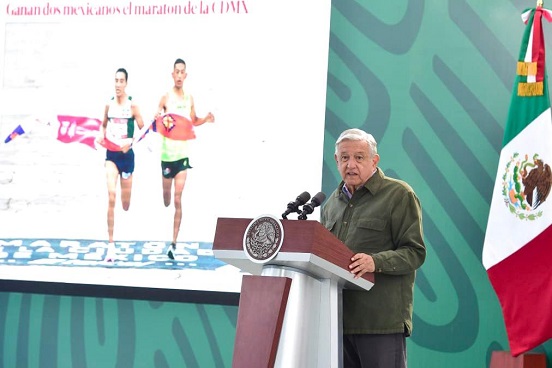 Agregó que lo que es “mucho muy importante” fue el triunfo de dos mexicanos en el maratón. Les envió felicitaciones, al igual que a sus familiares y a la Secretaría de la Defensa Nacional (Sedena).