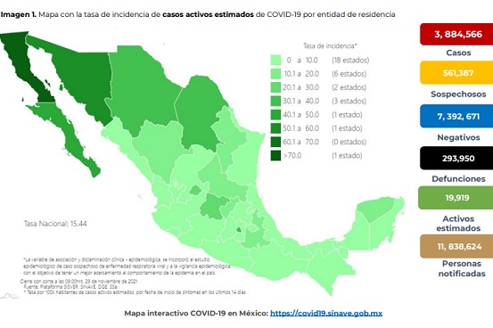 El reporte de la Secretaría de Salud de esta tarde, indica que la curva epidémica registró por segundo día un incremento, esta vez de 6 por ciento en el periodo del 14 al 20 de noviembre, en comparación con la semana previa.