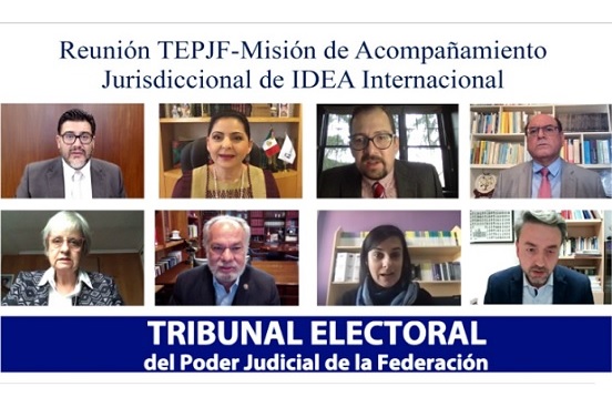 El magistrado presidente del Tribunal Electoral del Poder Judicial de la Federación (TEPJF), Reyes Rodríguez Mondragón, la magistrada Mónica Aralí Soto Fregoso y el magistrado José Luis Vargas Valdez se reunieron con integrantes de la Misión de Acompañamiento Jurisdiccional de IDEA Internacional, de quienes recibieron un análisis crítico sobre sentencias de distintas etapas del proceso electoral federal 2020-2021. Durante la reunión, deliberaron sobre temas relevantes como la violencia política en razón de género; fiscalización de las campañas; acceso a la justicia para grupos en situación de vulnerabilidad; participación política de las mujeres, y la representación de los migrantes que residen en el extranjero.