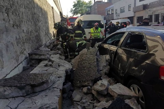 La tarde de este viernes, el recubrimiento de un muro cayó sobre tres autos entre Circuito Interior y Avenida México-Tacuba, afortunadamente no hubo lesionados.