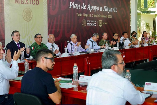 Resaltó la ejecución de obras de desarrollo en Nayarit: la construcción de una instalación naval con muelles en Boca de Chila, la rehabilitación del Puerto de San Blas y de las Islas Marías, el mejoramiento de carreteras para conectar las playas de Jalisco con las costas de Nayarit y los diferentes proyectos del Programa de Mejoramiento Urbano.