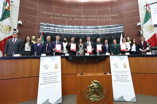 La Cámara de Senadores y el Congreso de Guerrero firmaron un convenio de colaboración, que busca fortalecer las capacidades institucionales del parlamento local, a través de la capacitación y actualización de diputadas y diputados, así como del personal que labora en dicha institución.