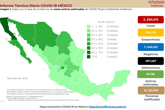 En 24 horas se confirmaron 2 mil 750 nuevos casos de la enfermedad, así como 211 muertes por su causa. Así, se han registrado 3 millones 930 mil 15 casos confirmados y 297 mil 567 fallecimientos desde que inició la emergencia sanitaria.