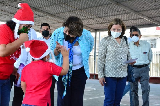 Finalmente, la secretaria de Educación visitó el jardín de niños Enrique Rébsamen, donde convivió con la comunidad escolar y presenció las actividades decembrinas, previo al inicio del receso escolar de fin año.