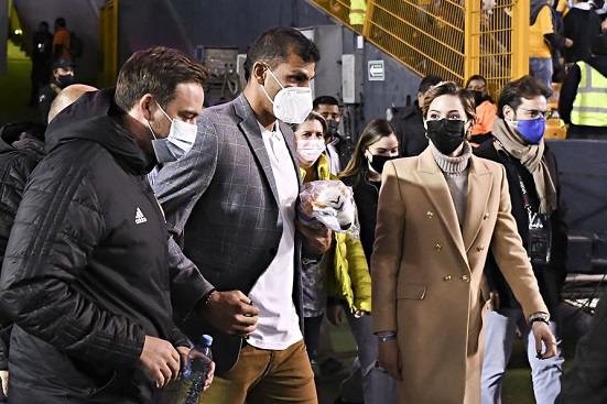 Presente en el Estadio Universitario para hacer comentarios en la señal de streaming de los felinos, el portero argentino aprovechó que las jugadoras de la Pandilla se encontraban a unos metros para lanzar el objeto, aunque lo hizo sin fuerza para evitar un contacto.
