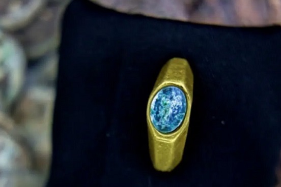 En las excavaciones submarinas fue descubierto un anillo octogonal de oro, con una gema verde engarzada y grabada con la imagen de un joven pastor con túnica, con un carnero u oveja en sus hombros.